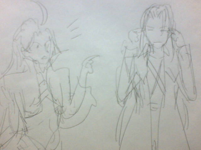またパソコンからなんか付け足します! (足しました2) これは解らない…!クジャと英雄です…。クジャが英雄ファッションにダメ出ししてる所とか…!かきたいんです。クジャの服難し過ぎる(英雄もだが)ので、止まってます… 一応、Disc3〜4にかけての、ブラン・バルでの対戦のとこで、あ!これ結構詳しく見える!!といっこデータセーブしてみたのでなんとか、いつかなんとか、したいです。(戦ってる時とかムービーとかで結構見えた気がする) 外見で何となく、キャラ被ってるようで、でも内面全然被ってない(ナルシスト系なのは似てるかもね!)のが良い。そしてクジャならば英雄がたとえやさぐれモードでも一向に意に介さないでズケズケものを言うのだろう、ということで。 クジャはひとのこと言う前に自分を何とかした方がいいよ…!!(失礼)異常(間違った。○:以上)、妄想図シリーズでした。 | calendar