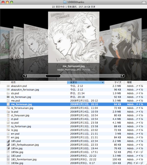 探す事十数分後、ふとんの中にありました。 アルティマニアキャラ編に挟まった状態で… ノーグとかシュミ族の長老のページに… ええーーーそれかきたかったのーー あとCDも服のポケットに入れたまま寝たりとかしてて起きたあとギャー!となったりもしました 固いよ ていうか壊れるから …色んな小人さんが部屋にいたようですが、一週間、部屋掃除をしてくれる小人さんだけはいなかったようでキッタナイ部屋が証拠としてしっかり残る一週間あまりとなりました ふふふ(…掃除します) しかしそれ以上に嬉しい事はたくさんなのですほくほくです。 不備もあったしずさんな企画でそこは申し訳なかったのですが…やってみてよかった!! 気がつくとうっかり普段のペースが逆転して祭関連のすきまに仕事、にそーっとなっている時があって(ダメ社会人)恐ろしかったのでやっぱり一日一枚とかだけでも難しいもんだなあというのはあったんですが…反面得るものはすごく大きかった… 何しろ皆さんのご反応の一個一個が大変ありがたかった(ありがたい)です。しみる… 以下蛇足ではありますが、 一周年~とか新年~とかも、なにかやりたいなあとは思いつつ何もできずじまいだったのですが、特に一周年の方、自分ではキセキじゃね?位のあれで(イヤー怠け者なんですよ本気で…なので。愛は溢れんばかりですが…←)実はこっそり感慨深かったので、あんまり大げさなのはなあというので言いませんでしたがその意味でも自分としてはまとめてどーーん!みたいなノリであったので(こっそり、なのです自分側だけ!きしょいな!小心ですいません)、何か余計に「ご褒美をいただいた!!」みたいに思えてうれしかったりしました リクエスト下さった方々、それから期間中見に来て下さった方々、ほんとにどうもありがとうございました!! (アリシアキーズNO ONE聴きながら ←良い歌…) _ 記念 昨日のカバーーフローーー自分のはあまり嬉しくはないけど便利 今回のファイル全部ですこんなに短期まとめては多分珍しい 結局フォトショッペ経由になってしまいましたので数が倍はあることになるのですが とりさんあての分の変更日、時間23:58が泣かす(…)どうも2分ではアップロード無理だったようです… …0が!!0さえあれば!!!(まだ言う) PR コメントを投稿する