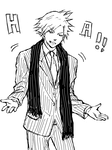 ★回された人は回してくれた人の指示に従うこと ★指示に従って描かれた絵は必ず日記に載せること ★回す時は回すキャラと指示を選んで回すこと ★必ず指示選択欄に指示を足して回すこと 指示選択欄 【ねこ耳・眼帯・血・帽子・眼鏡・制服・花+リボン+お菓子+悲しみ+ハート+サスペンダー+包帯+和服+ポンチョ+鼻血+ナース+釘バット+トイレ(和式)+手錠+メイド服+忍者服+パンツ+マント+縄+サングラス+スーツ+マフラー+アイスクリーム+みつあみ+パジャマ】 足す指示→パジャマ ツナギと迷ってパジャマ。何でパジャマかって言うと好きだからです。みんなくつろごうぜ(?) しかし何かすごいのありますね…?特に血と鼻血で二種類ある所に追加した方のこだわりを感じます。そういうこだわり、嫌いじゃないぜ(…) そしてなすさんのご指定の キャラ→クラウド 指定→スーツ、マフラー をいただいてきまして↓ ●貴方の名前と使用した道具を教えて下さい。 名前:first 道具:手がきブログツール ●この絵でこだわった所はどこですか? えーとスーツがどうやったら学生服(ブレザー)に見えずに済むかって事でしょうか。成功してるかはともかく!お陰でヤンエグ風ですよ。弊害ですよ。こんなつもりはなかったんだ あと上手くかけない髪型ちょっとこだわったっていうかがんばった。すごいがんばった。…だから主役って奴は!(八つ当たり) ●回してくれた人の絵はどう思う? か わ い い そして何かなつかしいこととかを思い出しそうになるというか。じわっと来るものがある絵をかかれる方です ●描き終えての感想を述べてください。 思ってたよりさらに楽しかったです。クラウド(かくの)苦手なのは相変わらずなんですけど。この作戦、使える…(黒い笑み)変に苦手意識持っちゃいかんな ●この人の絵が見たいと思う人7人とキャラと指示を指定してください。 私もなすさん方式で。(だってそれでまんまとかかったから) 思い付きで指定だけさせていただいてみますので、うっかりどれかに引っかかっちゃった方は是非! あと、各人指定2コずつって言うのはもしかして決まりじゃないのかも知れないけど、わかりやすいので私もそれで^_^ A)キャラ→ベアトリクス 指定→眼鏡、パジャマ B)キャラ→素子さん 指定→トイレ(和式)、釘バット C)キャラ→パンネロ 指定→サスペンダー、マフラー D)キャラ→サラマンダー 指定→制服、釘バット E)キャラ→バレット 指定→スーツ、眼鏡 ゆめみすぎだとおもいますよ (あと釘バットと眼鏡連呼。好きなのか。) 書いてる内に名指しで回したくなってしょうがなかったけど、もう充分な感じにイタイ子な気がするのでこの辺で…(もう遅い) 拾ってくれたらすごい喜びます。私がですが。私だけが、かもしれませんが。 …いやいや、違うよね? (ところでサスペンダーって打っててはっサラマンダー、と思い付いたとかは秘密です) 受け取って下さった場合でも、自分で止めたい方は例えば キャラ→クラウド 指定→悲しみ、釘バット とかって指定して、それちょっとデフォルトじゃないですか、てオチにしたらいいと思いますし オチになってないし どこにそんなひと手間をかける必要が 以上、なすさんありがとうございました! もしかしてお受け取りでなくてもご興味ある方はお好きなキャラに項目当てはめて考えるだけでもちょっと楽しいかもですよフフフ(…) おすすめです^_^ PR コメントを投稿する