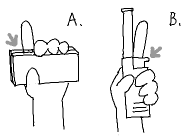 今日は寝起きの怖かった話をご紹介します。 携帯の目覚ましを止めるつもりでチャッカマンのスイッチに指をかけていた です うちにエアコンがないのはすでにお話した通りで(そうだったか?)ストーブなんですが、その着火装置がいかれていて自力では火をつけてくれないので、外からチャッカマンで付けているのでまあチャッカマンが部屋に常時あって、 大抵ストーブの下の受け皿?みたいなとこにいつも何となく収まっているのですが、今朝は何かたまたま枕元に転がっていて、寝ながら掴んだのが携帯じゃなくてそっちだった、と そして何となく携帯のサイドキーとチャッカマンのスイッチが似ていた(?)、と そういうことなんですが 髪か枕に着火する所でしたね!怖いね! 目が覚めたさめた / ところで大分前からその携帯、サイドキーをロックかけて戻りません。誰かやり方教えて下さい… 説明書…どこ! (つまりどっちにしてもサイドキーでアラームが止まる訳では無かったのですが) これも寝起きに音を止めようとしてあれこれやってうっかりそうなってあれなんですけども 寝起きはまずいよね 色々ね (ところでチャッカマンて書いてはいますけどチャッカマンて言うのなんとなくいつも恥ずかしいのですが何か別の真面目で真っ当な呼び名はないものか あとで恥ずかしくなって消してたらすいませんチャッカマンのせいです) / >追 そういえば絵日記機能というのがあったので ほらこんなに似ているよ的な意図でかいてみようと 思ったんですが かいてたらだんだん違うよな、て 思ったんですけど(解ったんですけど) フ A:携帯の押し方 B:チャッカマンの押し方 PR コメントを投稿する