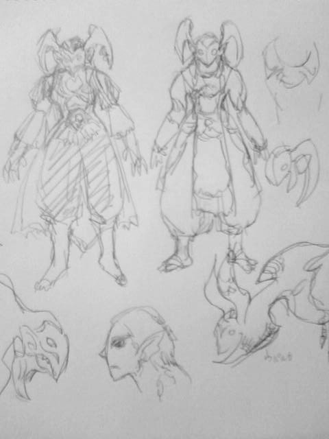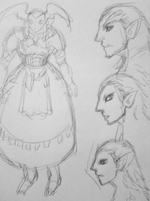 を考えてみよう企画の何かメモ的なものです、以前ヴィエラ男子の時見たいって言ってくれる方がいて下さって俄然はりきったものの、どーーーっもなかなか実現しないのでちょっとなんとか、こう (もうなんかこれもかいてから半年以上は経ってる、多分、 ひっ) スケッチブックの上携帯写真からで荒いですが 大体とても今更なんですが、何か画像上げても上げても忍者さんにいやーまだまだ容量の10パーにもなってませんよハハハ(*意訳)て言われるので何を〜と拍車がかかったのと、何故今そんなことを、ていう時ほど脱線したくなるのが人情、とかそんなだと思われます ああ (試験前に掃除、は私はしませんでしたが、きっとそういう心理) 出たな靴への異様なこだわり というかこれ変な位置に足だけあるせいで非常にコッカトリス的ななにかに ガリフの顔とか鳥っぽいとは思ってるんですけど特にそんなつもりは… バルーンスカート的な形状をついとってしまうのは公式のヒュムのおじいさんのそれが妙に気になって(気に入って)しまったからだったりします ガリフはでもみんな働き者の印象があるのでスカートより、何ていうのかな結局…あれか…モンペか そういうののが似合うかも 上の右の人の路線でもうちょっと何とか と思いますが な 中の人など はじめ、バンガの目を覆ってる人がいるのを?と思ってたらあれは視覚に頼ることが少ないせいだそうで、(見えなくても変わらないってことですね) でガリフも嗅覚と聴覚が発達してるという…! なるほど耳は出てる(*あれがリアル耳だとすれば)けど目の部分は孔が小さいし見えにくそうなんである… あと嗅覚のことでいうなら面には何か鋤鼻器官的な仕組みが織り込まれてたり?とか夢は広がります…(夢…) ともかく、目についてはガリフと同じくそんなによくはない(あくまで、比較的、の意味だと思いますが)、ということっぽく、そうなると目が何かちょっと特殊な形状であったりしてもときめくなあ…とかそういう 話 あと多分毛深いと思うんですけど、アナスタシス猊下唯一ですがヘルガス族とか、オンドール候側近レベ族ツインズ(兄弟?)とかの独特の額の毛の生え際にもときめく私としてはそれに近い路線を推したい…。 もうちょっと細かく突っ込みつつ清書というか、少しは見れる状態に、いつか、したいものです しかしジャハラに行ってふらふらして心行くまでガリフ男子を眺めながら… とか思ってるとこれまでのように…いつ!に!なっても!! 12はなんかそのへんをふらふらしてるだけでいやされるのは私だけですか… PR コメントを投稿する
